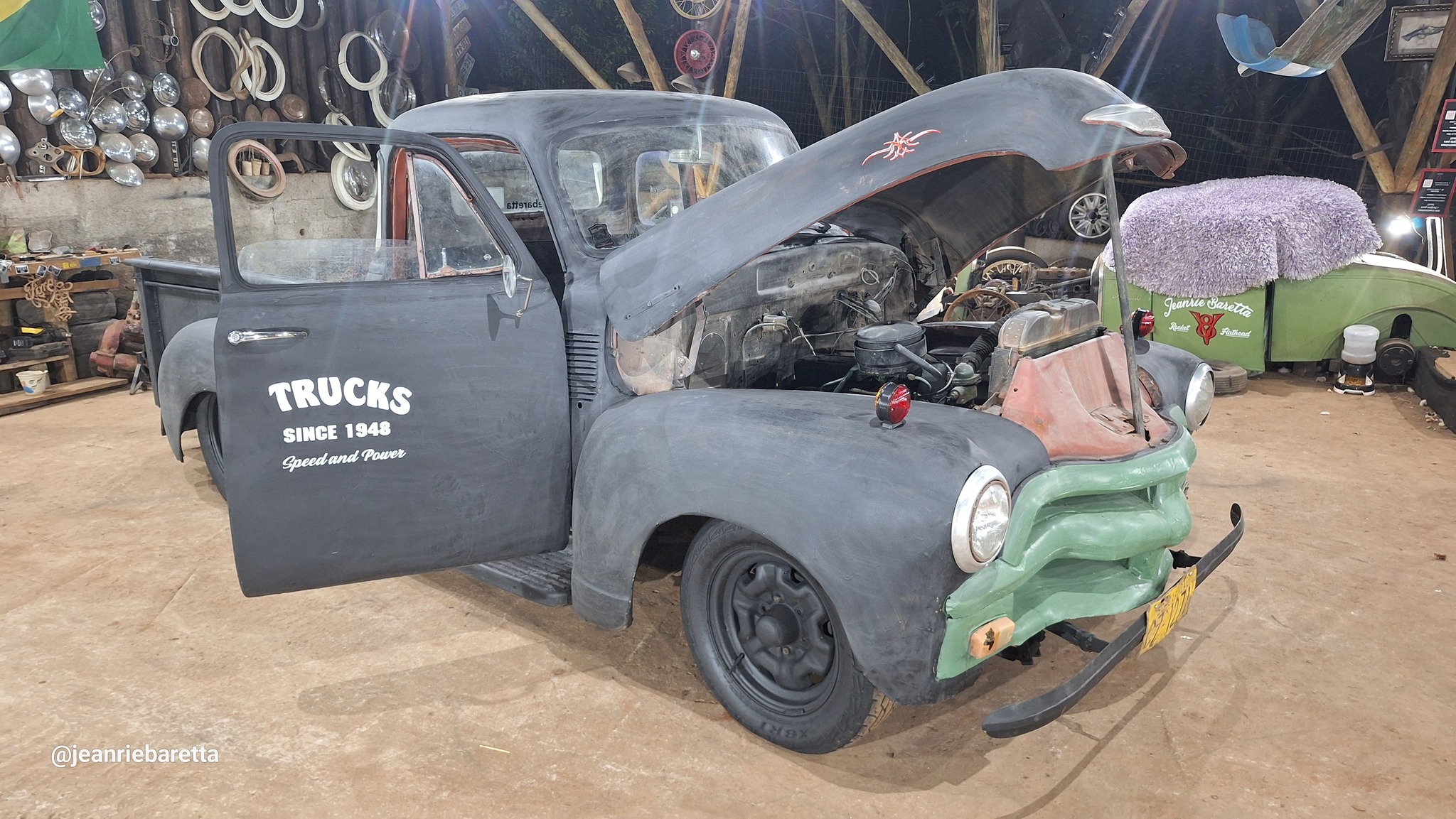 | Boca de Bagre - Canadense - 5 Janelas - Chevrolet 1954 Cabine de Luxo R$44.000,00 . Sigam nosso Instagram: >> @jeanriebaretta >>> https://instagram.com/jeanriebaretta . Contato: WhatsApp <> 49.9.9975.0309 www.jeanriebaretta.com.br . Pick-up Chevrolet 1954 Cabine de Luxo modelo "5" Janelas, fabricação Canadense, toda de lata, veículo precisando de restauração total SIM, porém, é uma boa e rara pick-up, carroceria boa, bem de estrutura, assoalho bom, poucos podres aparentes, o principal que é TODA LATA original de época !!!! Grade original em bom estado com escrita Chevrolet, para-choque no lugar, painel de instrumentos com relógios originais em bom estado de conservação, botões, tampa de porta luvas e grade do painel original. Caçamba de época, estribos e para-lamas todos de LATA, tudo de LATA, tudo de época original,,, Possui motor e câmbio instalado, 4 cilindros diesel antigo, modelo BEDFORD, funcionando, até andamos um pouco com ela pra frente e pra trás, mas está sem freio, não deu pra se aventurar muito no passeio, solicite vídeos pelo WhatsApp, devido ao amplo tamanho do cofre facilmente pode ser adaptado qualquer outra mecânica, seja ela moderna ou até mesmo uma mecânica de época, em melhores condições, as opções são várias, oque precisa ser avaliado é a sua condição financeira para decidir oque instalar... possui diferencial no lugar, eixo com suspensão dianteira, caixa de direção enroscando para virar do lado direito. Tenho motor original 6 cilindros e câmbio, posso enviar junto com a pick-up por + R$6.000,00 (não sei o estado desse motor) Pintura apenas foi aplicado um fundo preto fosco, sem acabamento. Quem tiver dúvidas pode conferir o veículo pessoalmente, será um prazer. > Estamos em Capinzal-SC > Veículo não possui documento, indico somente para clientes quem regulariza. > Facilito a negociação parcelada entrada + 10 pagamentos. > Não tenho interesse em trocas. > Despachamos para todo Brasil. > Fica a critério do comprador concluir a negociação somente por fotos ou mesmo pessoalmente, sem qualquer direito a exigir garantias por se tratar de um carro antigo para restauração total. > Placas amarelas são itens ilustrativos, não são originais e não fazem parte da negociação. . Jeanrie Tim / WhatsApp_ Phone:+55(49)999750309 . .; |